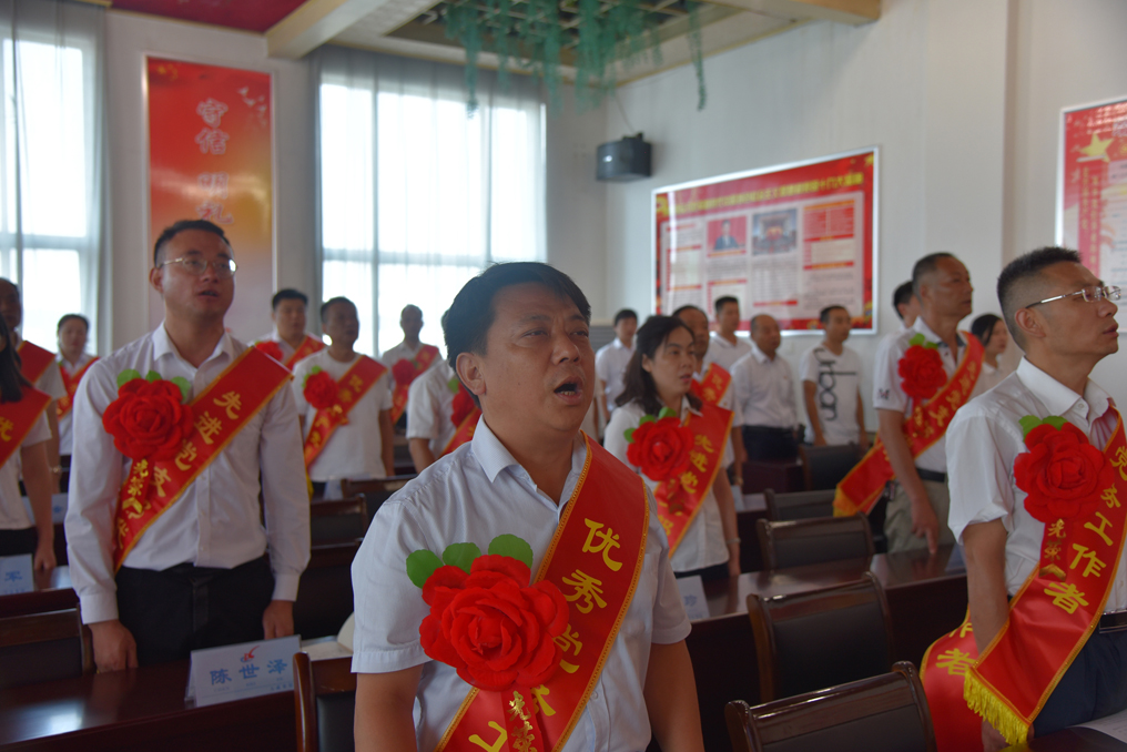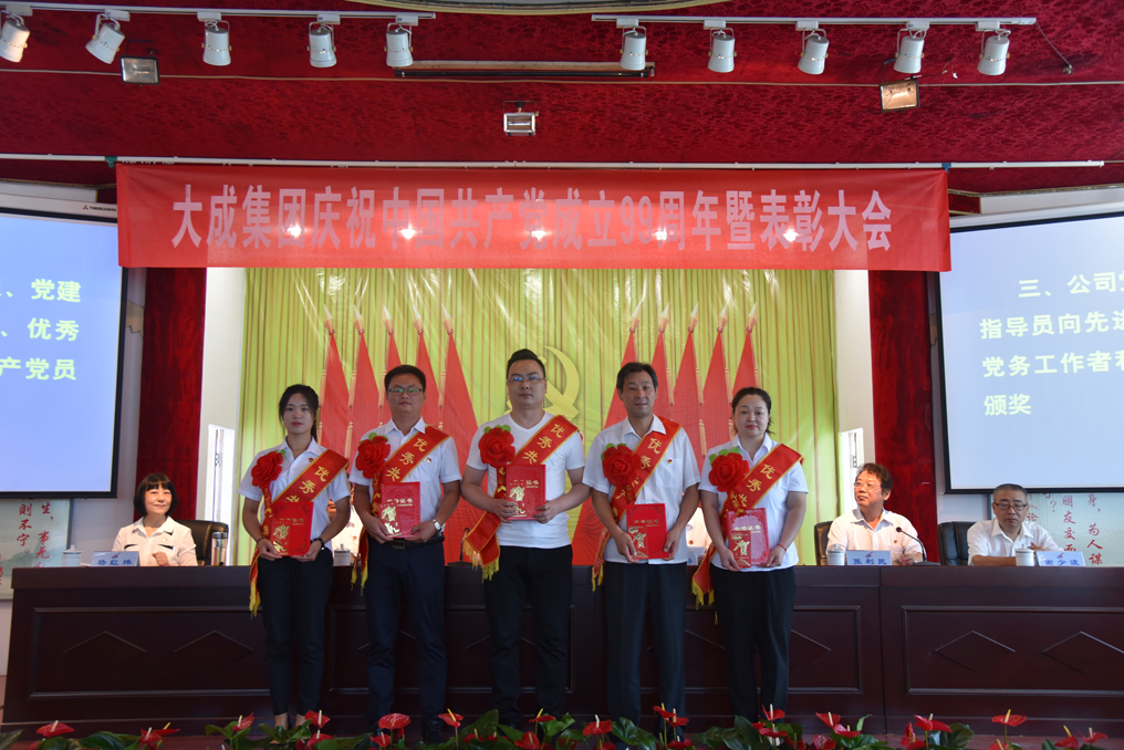在雄壮的《国歌》声中,大会正式开始。党委委员张利民首先宣读公司党委《关于表彰公司2019年度先进党支部、优秀党务工作者和优秀共产党员的决定》(大成集团党字[2020]8号)文件,对在2019年度工作中做出突出贡献的第一直属项目部等5个先进党支部、牛少卿等5名优秀党务工作者和梁鑫田等25名优秀共产党员予以了通报表彰。